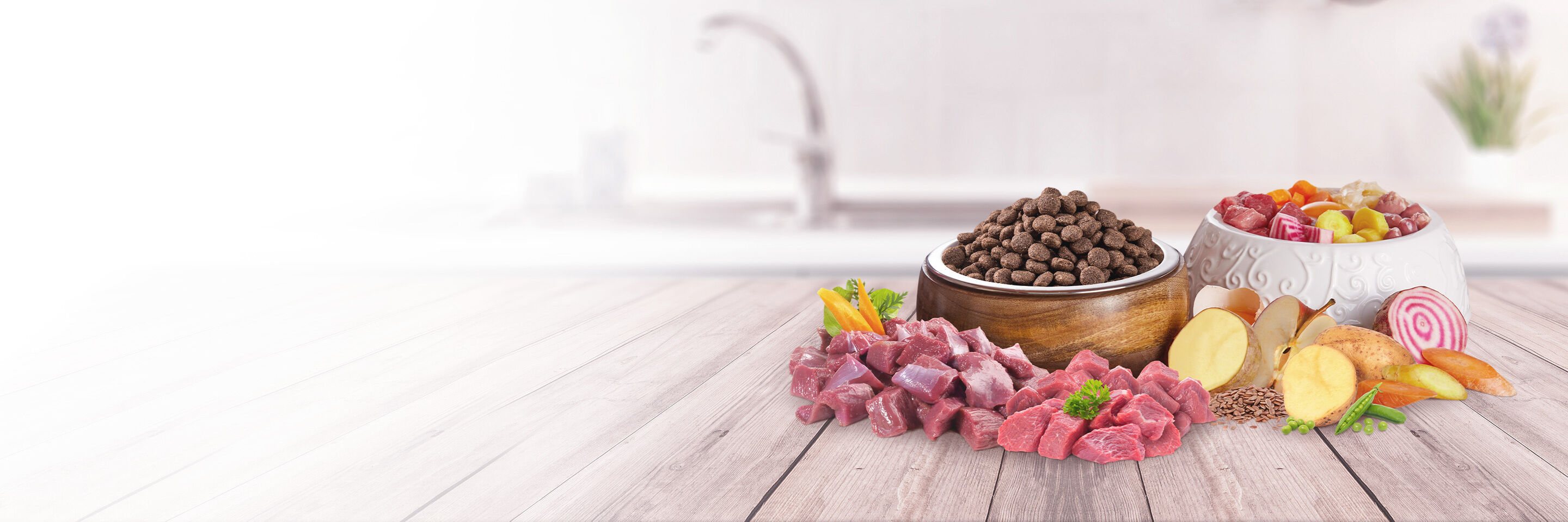 Nous incorporons la bonne portion de viande et des abats riches en substances vitales, qui sont ensuite mixés avec de précieuses substances vitales à base de plantes et de sources saines de glucides, comme les pommes de terre. Nous réussissons une préparation particulièrement douce avec le procédé Thermostufenmix®. C'est ainsi que les délicieuses variétés d'aliments secs Happy Dog de la plus haute qualité sont créés dans la ville bavaroise de Wehringen.