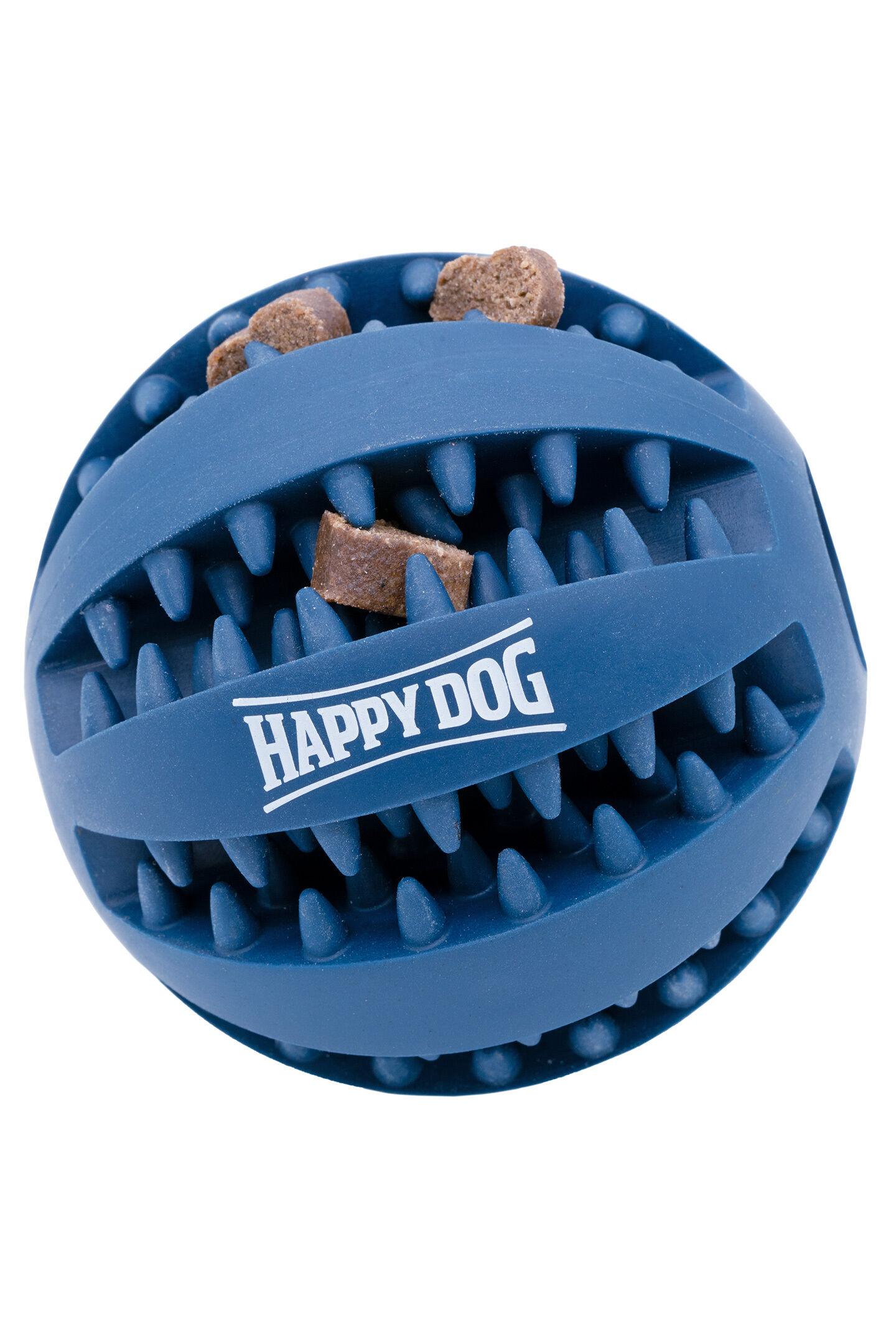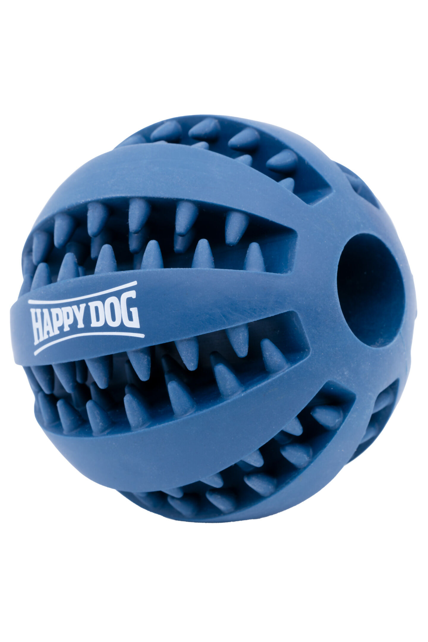 La balle à friandises Happy Dog est un jeu d'occupation idéal pour l'intérieur et l'extérieur. Entre les picots, on peut facilement y coincer des friandises, ou même de la pâtée. Votre boule de poils sera occupée pendant un certain temps à trouver une technique pour faire sortir les délicieux snacks de la balle. Outre l'effet d'entraînement et d'occupation, la balle à friandises aide à garder les dents propres grâce à la mastication du caoutchouc. Ces balles attireront irrésistiblement votre chien !