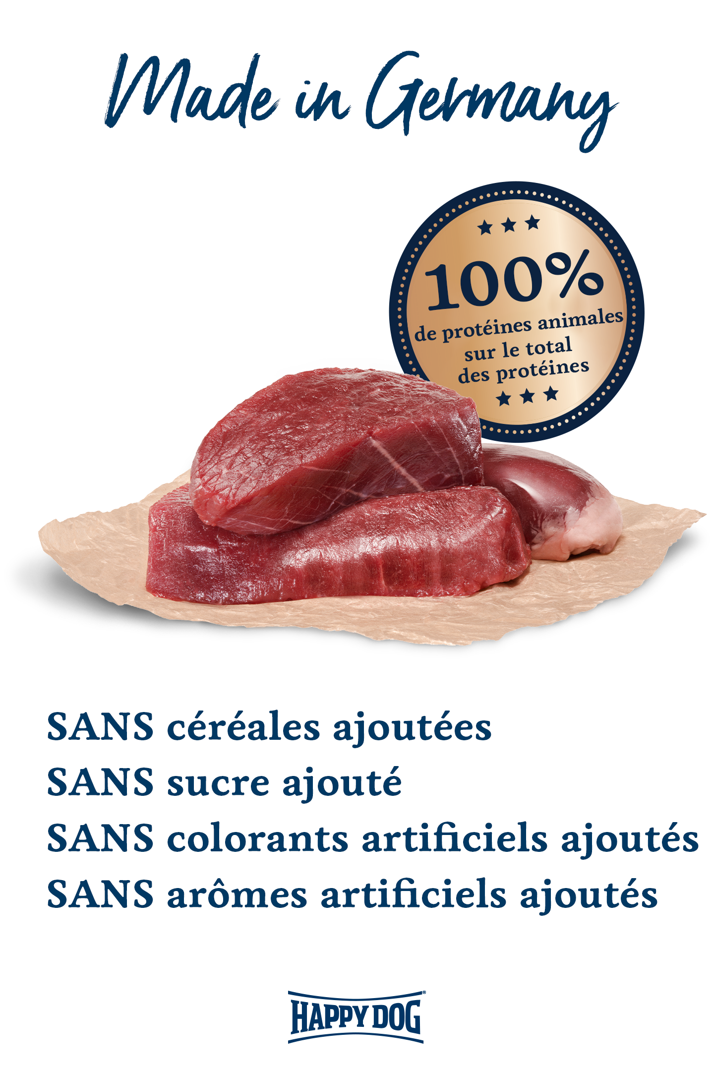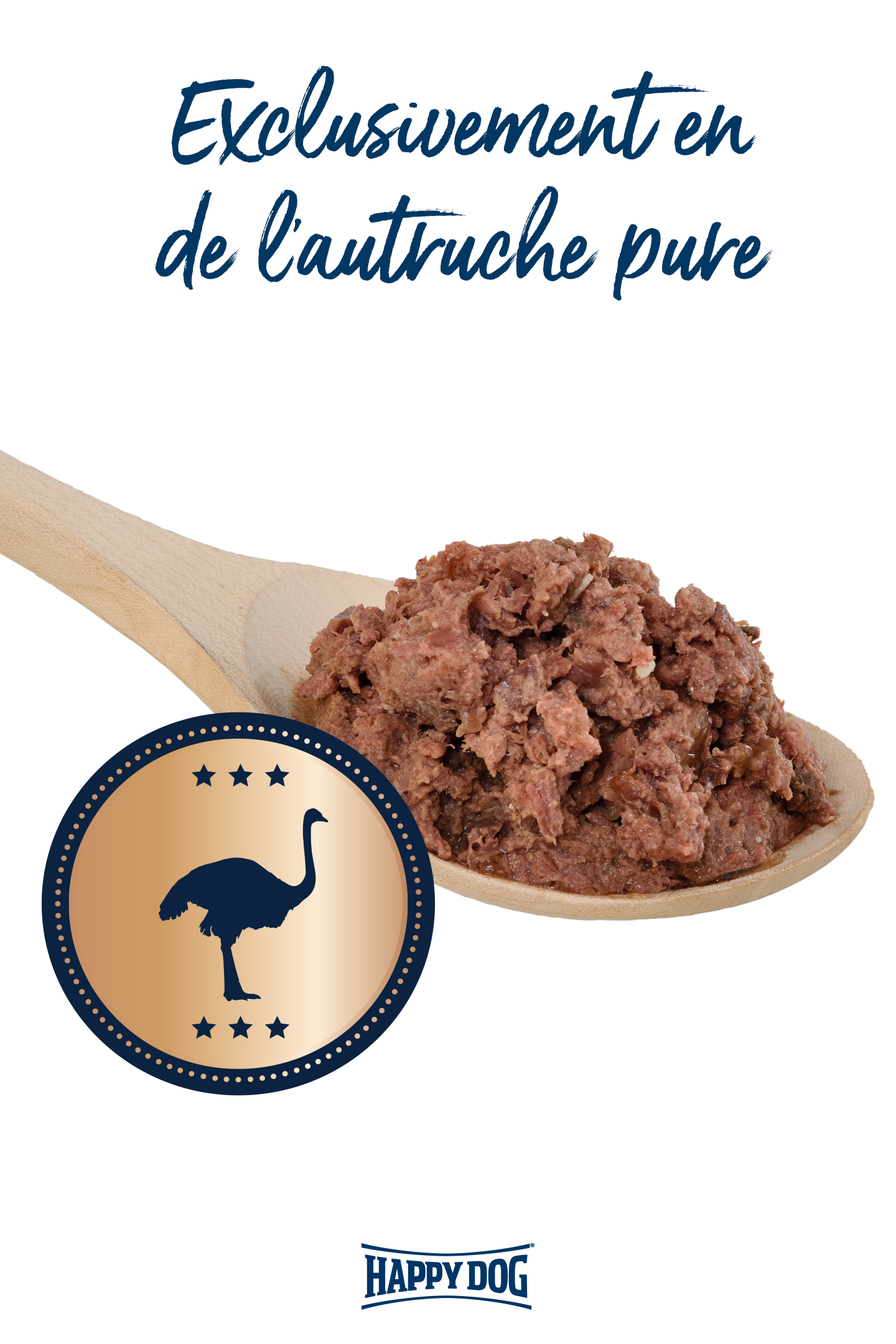 L’aliment humide Happy Dog 100 % Autruche - apporte la nature dans sa gamelle. Notre qualité humide à base de viande de qualité supérieure est composé à 100 % de viande et d'abats précieux tels que cœur, poumon et foie contient essentiels vitamines et des minéraux importants. La viande et les abats proviennent exclusivement de l'autruche*. Nos aliments humides premium sont produit sans soja ni autres additifs végétaux.