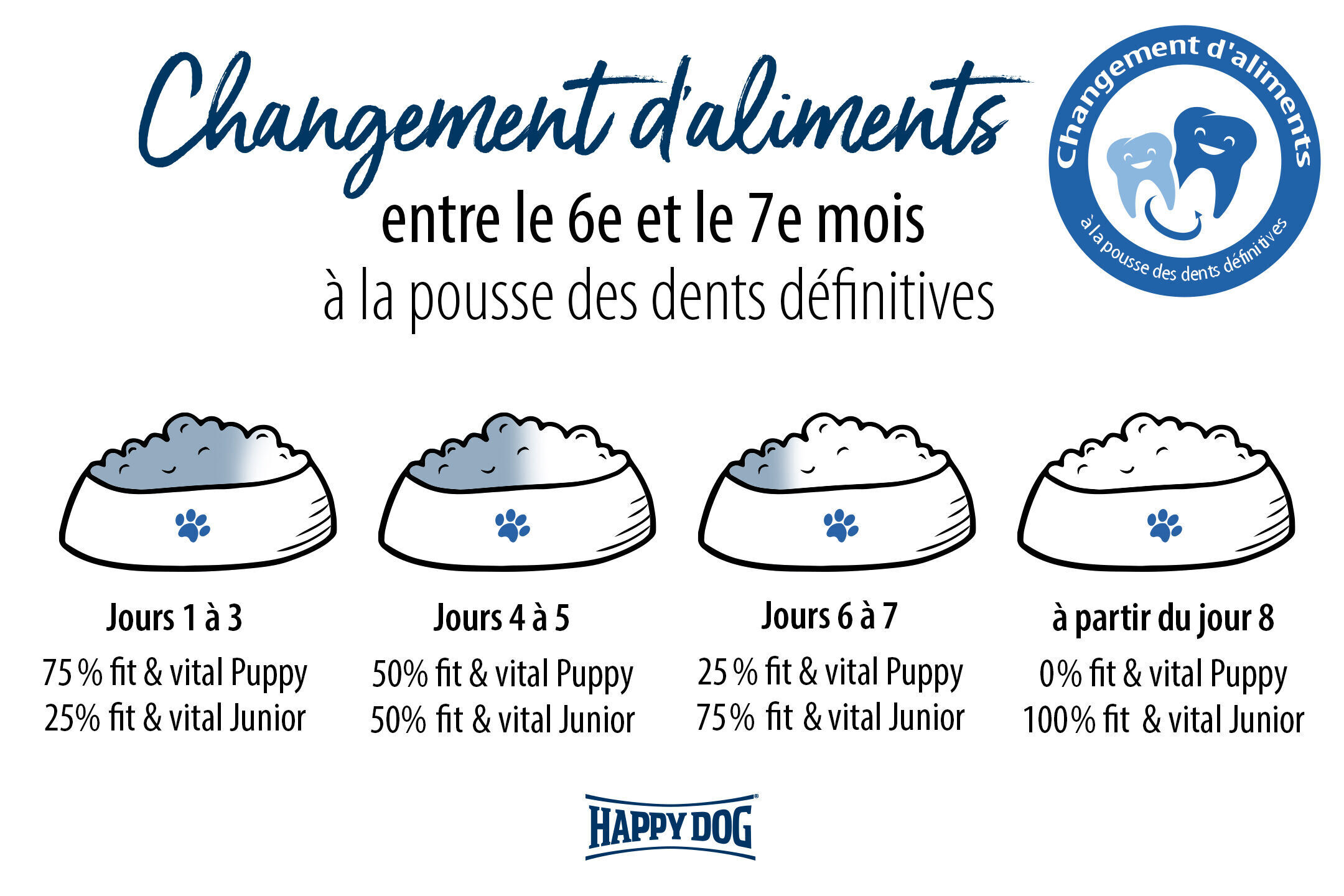 À partir de la 27ème semaine, passez progressivement à une nourriture pour chiens Junior, comme Happy Dog fit & vital Junior.