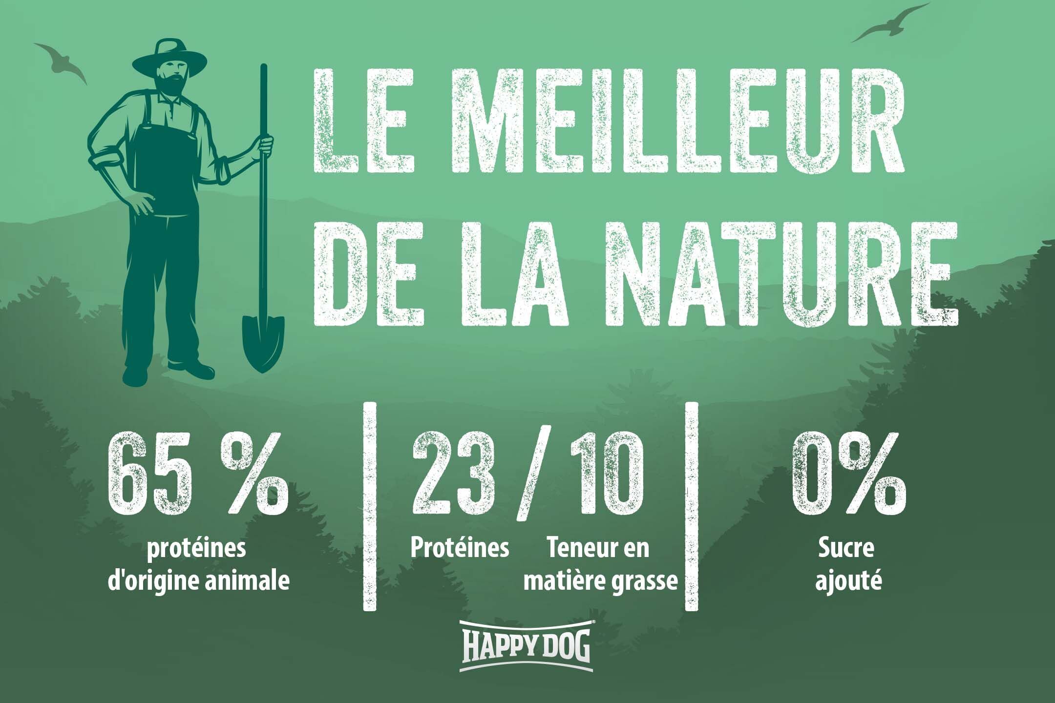 Un mélange de croquettes avec les meilleurs ingrédients issus de la région Bavaroise en Allemagne, spécialement conçu pour les chiens adultes ayant des besoins énergétiques normaux. Cet aliment complet très digeste et riche en protéines animales de haute qualité, est enrichi de fromage blanc, d'épinards, de levure et de carottes. La recette favorise une bonne digestion et soutient la fonction intestinale, et convient donc parfaitement pour les chiens sensibles. Les céréales complètes représentent d'importantes sources de fibres. Elles aident à réguler l'activité intestinale, rassasient, facilitent la digestion et contribuent à la santé intestinale. Elles fournissent également de nombreuses vitamines B, des minéraux tels que le magnésium, le fer, le sélénium et le zinc et regorgent de glucides complexes. La recette extrêmement savoureuse contient de précieuses herbes locales. Ce mélange offre une expérience gustative spéciale à votre chien, grâce à différentes saveurs et formes de croquettes dans la gamelle. Cet aliment sec équilibré et adapté à l'espèce convient pour les chiens adultes et normalement actifs de toutes races.