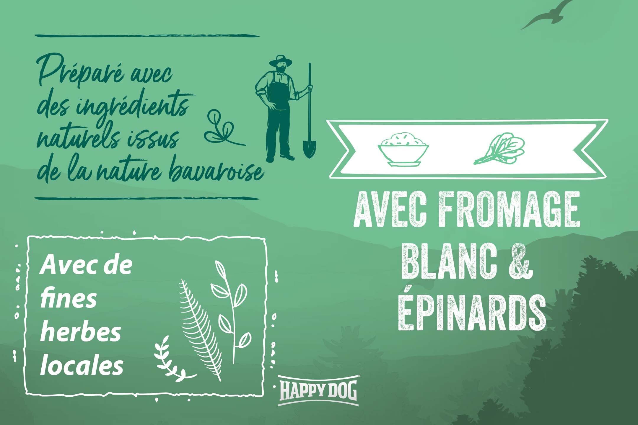 Mélange de croquettes équilibré et facile à digérer, avec des épinards et du fromage blanc