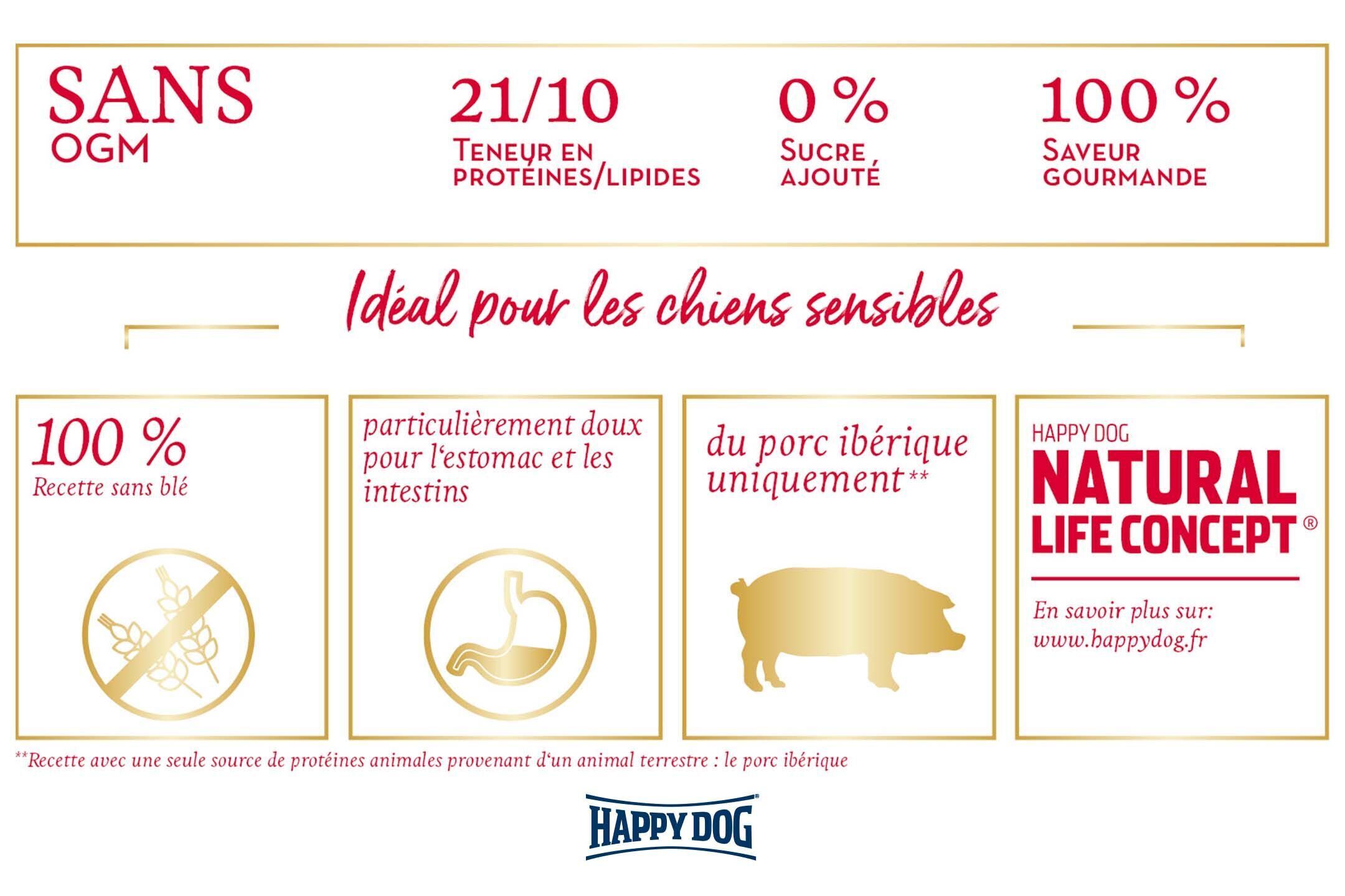 Happy Dog Andalucía est idéal pour tous les gourmands adultes exigeants à partir de 11 kg qui recherchent la variété ou qui sont très difficiles.