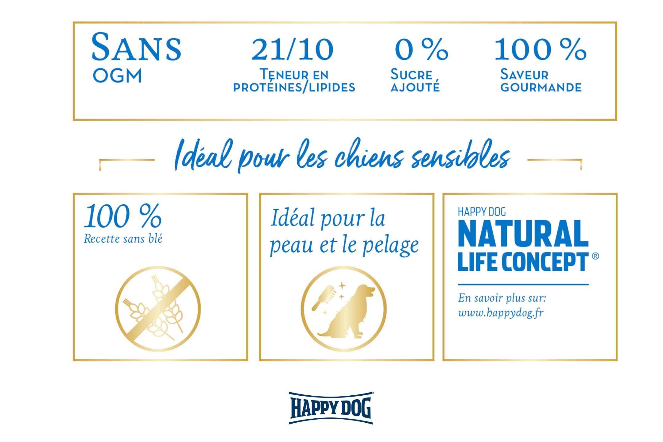 Exceptionnellement savoureux et équilibré, notre aliment complet super premium Happy Dog Greece est idéal pour tous les adultes gourmands et/ou difficiles qui recherchent de la variété dans la gamelle ou un aliment particulier, et en cas de soucis cutanés.