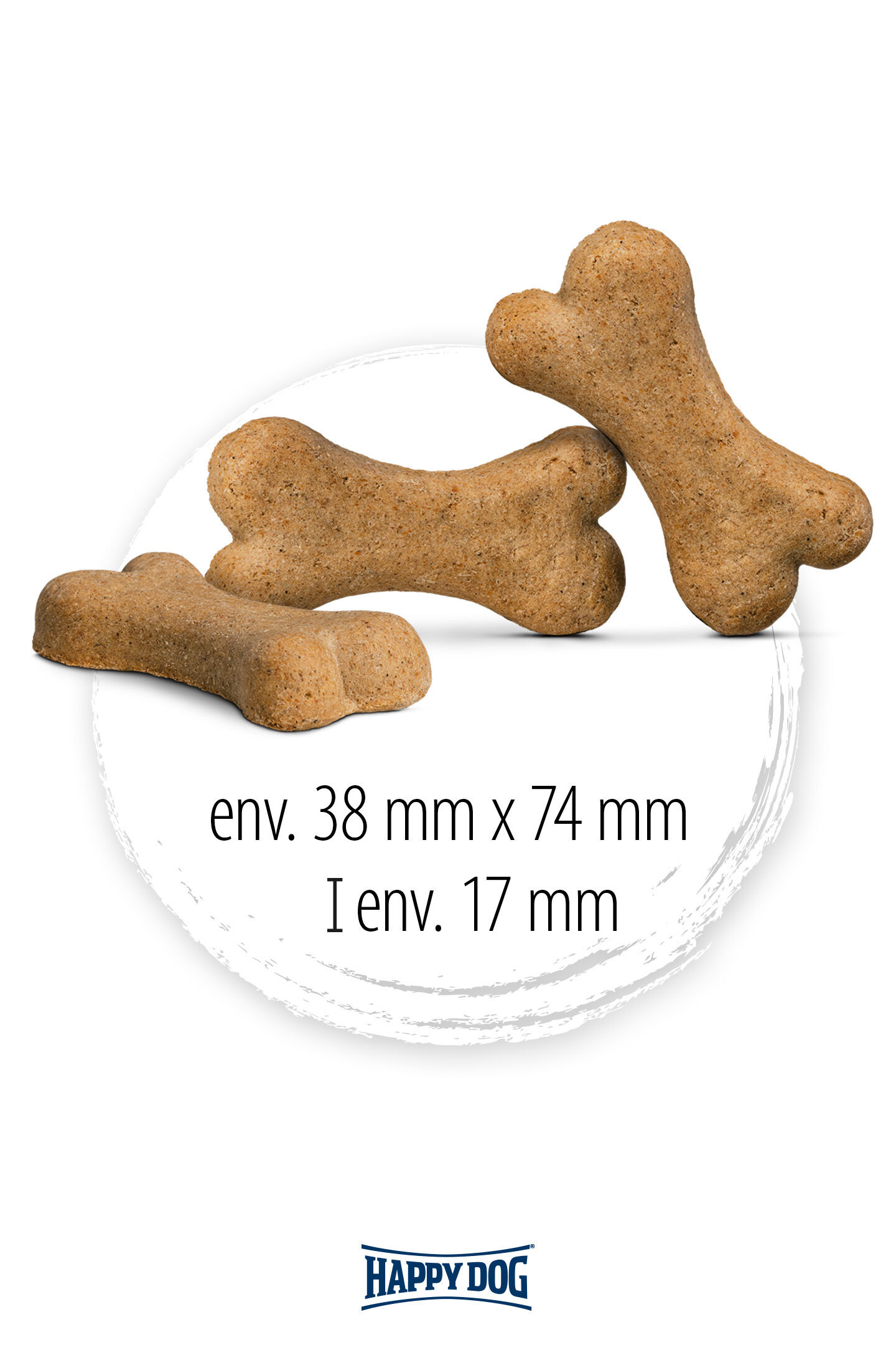 Ces biscuits pour chiens croustillants en forme d'os, à base de riz facile à digérer et d'agneau tendre, raviront chaque jour votre compagnon à quatre pattes. Les chiens de taille moyenne peuvent recevoir jusqu'à dix de ces délicieux biscuits par jour en guise de récompense, tandis que les chiens de plus de 30 kg peuvent en recevoir jusqu'à 17 par jour. Ces biscuits pour chiens sont cuits au four jusqu'à ce qu'ils soient dorés, sans colorants, sans arômes ni conservateurs artificiels ajoutés. Pour un premier essai, nous vous recommandons nos Biscuits Os NaturCroq à l'agneau et au riz en paquet de 500 g. Pour ceux qui ont déjà adopté ce produit, ils sont également disponibles en paquet de 5 kg pour un plaisir prolongé. Un bénéfice secondaire : ces friandises cuites au four peuvent contribuer à l'hygiène dentaire quotidienne de votre chien.